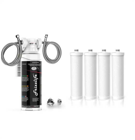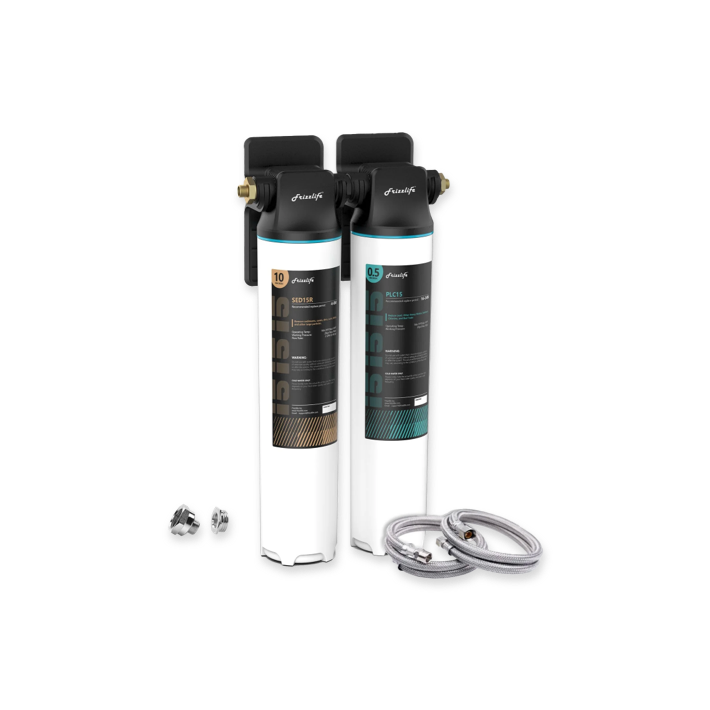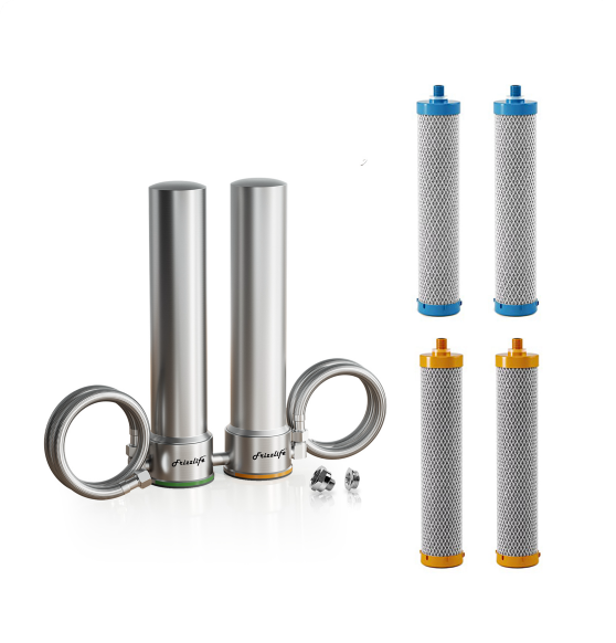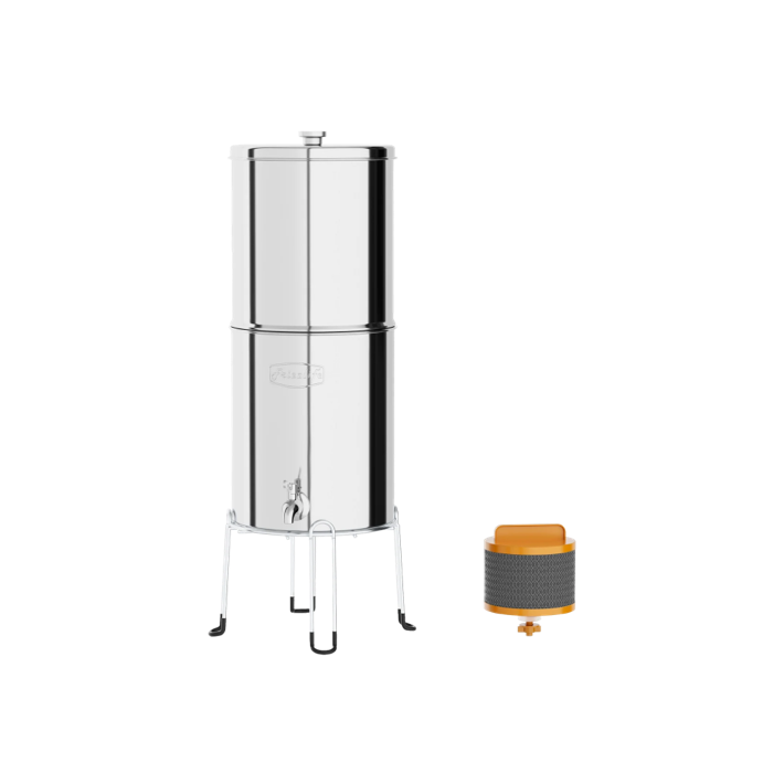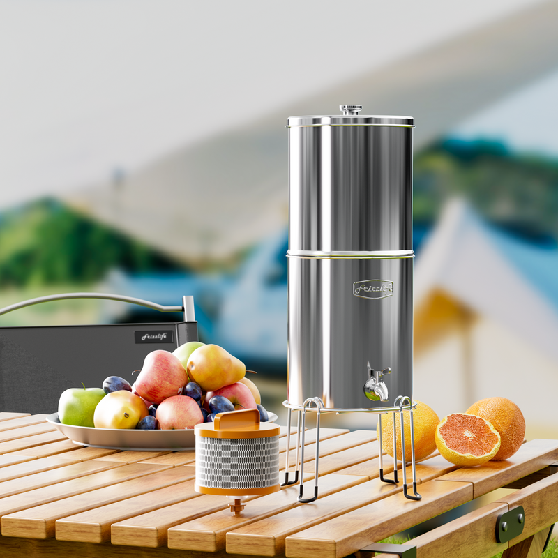 Frizzlife G210-SCALE Schwerkraft-Wasserfiltersystem, NSF-zertifiziertes Element mit Kalkschutz, reduziert 99.9 % Chlor, Geschmack und Geruch, Verunreinigungen, Reinigungssystem mit Ständer für Zuhause, Camping, 2.25 G