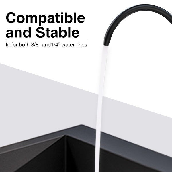 - Das hochgewölbte moderne Design des mattschwarzen Wasserhahns verleiht jeder Inneneinrichtung Raffinesse.